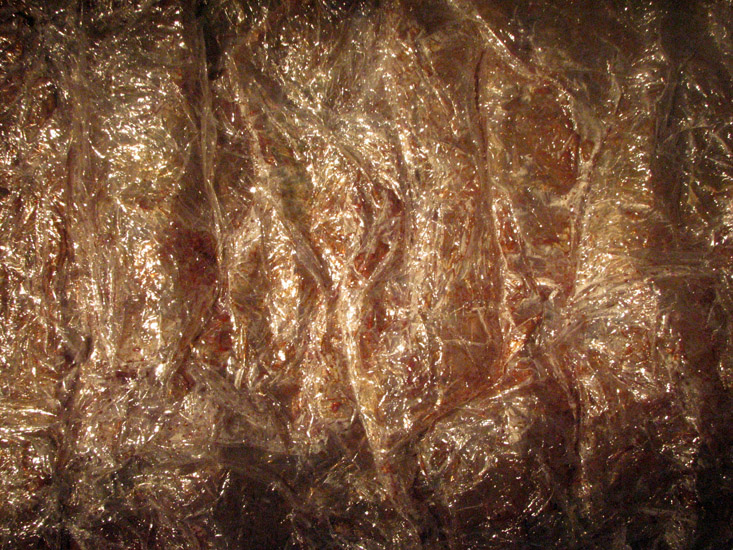 Plastic Paintings: Bodily Fluids 12, acrylic in plastic wrap sculpture, photograph of installation.