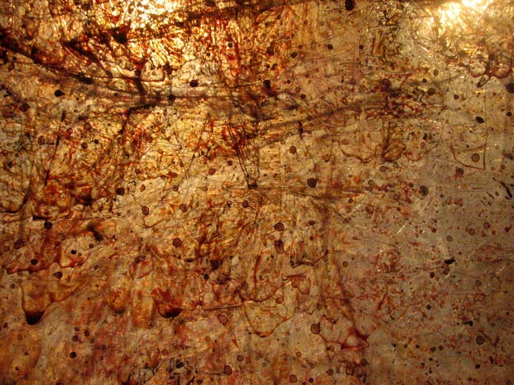 Plastic Paintings: Bodily Fluids 2, acrylic in plastic wrap sculpture, photograph of installation.