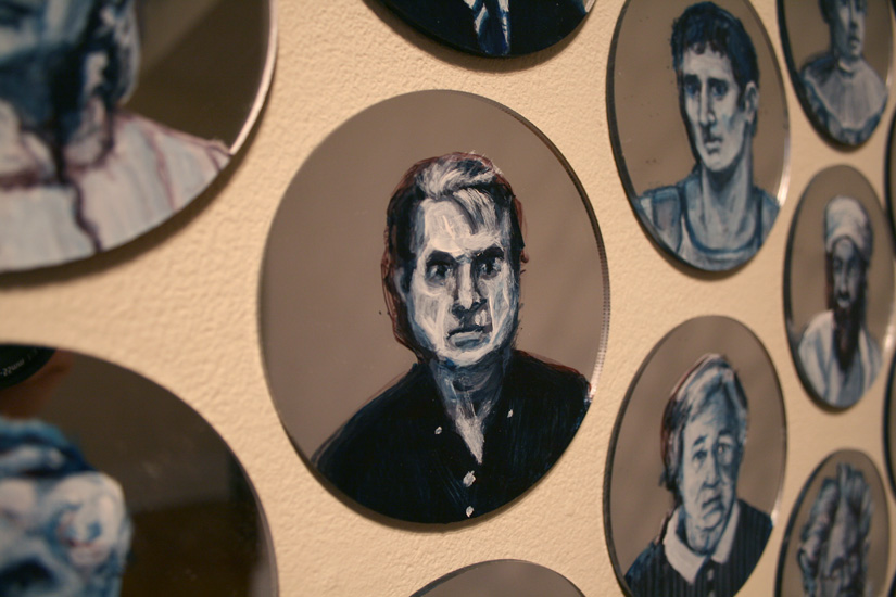 Detail: Francis Bacon, Jewel Net of Indra installation, 1000 acrylic mirrors with 325 acrylic painted portraits, Aug. 2011 - present, photo: Gareth Bate.