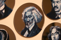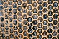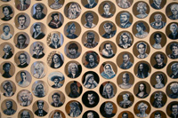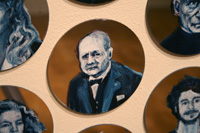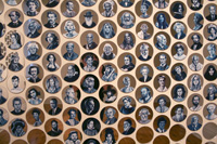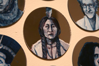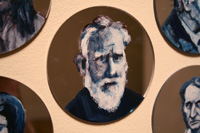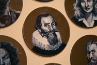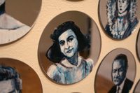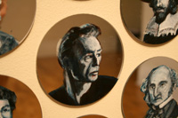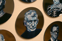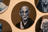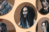 Gareth Bate’s Jewel Net of Indra is an ongoing large-scale installation that will take several years to complete. It is a cosmology representing the interconnectedness of humanity. The starting point is a Mahayana Buddhist metaphor of an infinite net of jewels, each representing an individual. Every jewel contains a reflection of all others. The installation will attempt to represent the totality of lives lived and the historical connections between them. The images below represent the 325 people of Phase 1 which were exhibited at Toronto's Gladstone Hotel. Gareth has now painted over 1900 people. His ultimate goal is 6765. Read Artist Statement and List of Names...