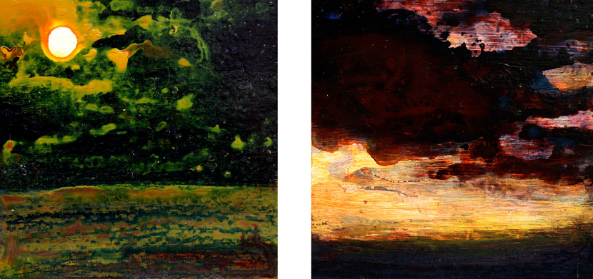 Moments: Full Moon Sunrise, acrylic on wood, 2 Paintings: 8 x 8 inches, Feb.-Dec. 2010, sold.