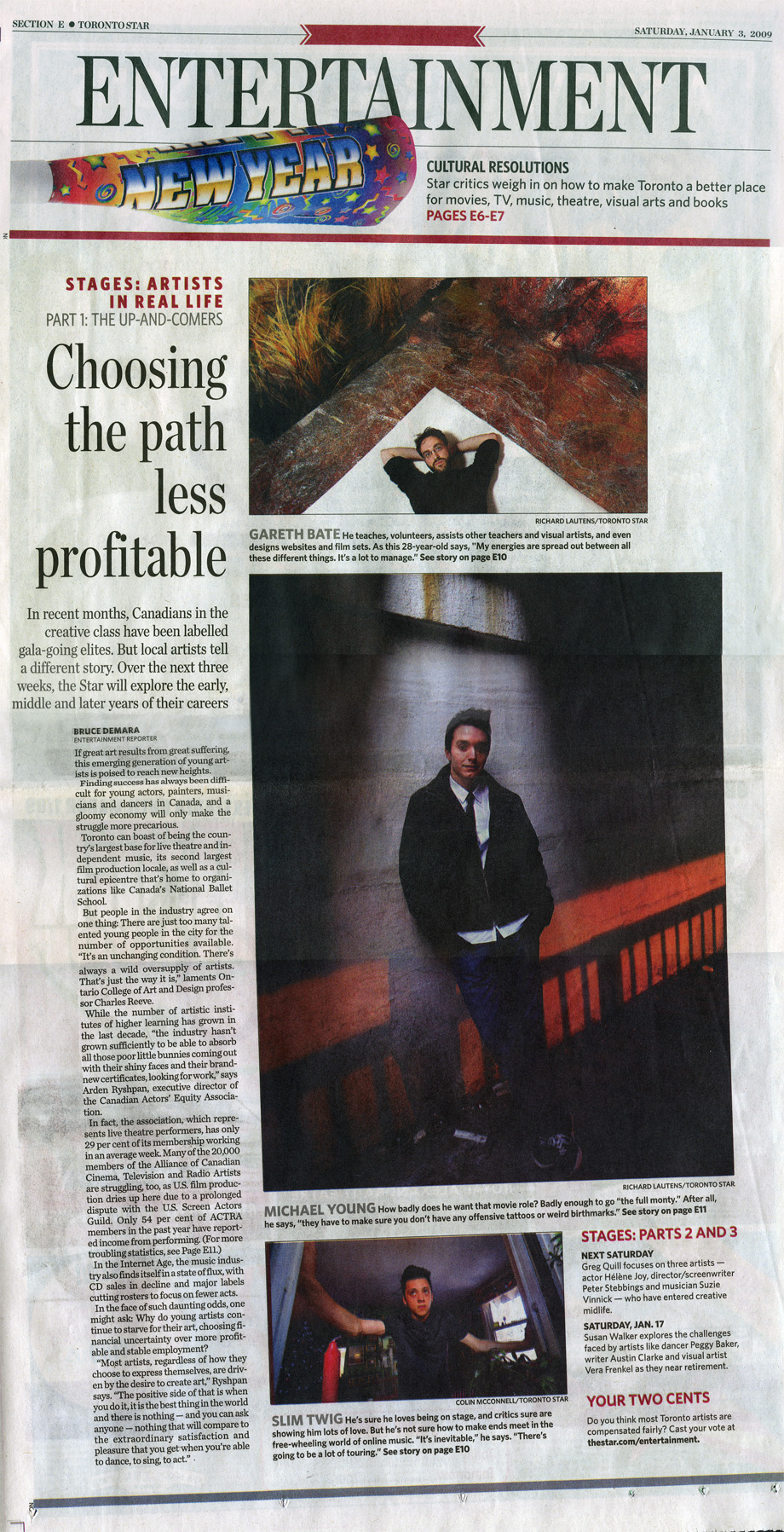 Finding success has always been difficult for young actors, painters, musicians and dancers in Canada, and a gloomy economy will only make the struggle more precarious.