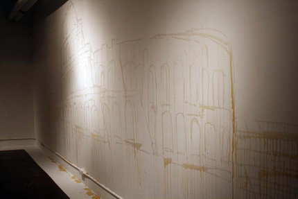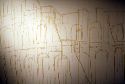 This piece also asks the question: “Is this a wasteful act? Or is this honey more valuable in the form of art than it would have been stirred into a teacup and forgotten?”